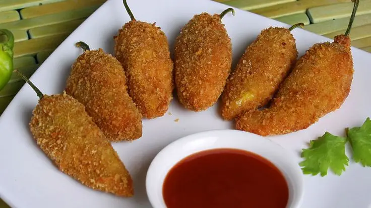 Fresh green chilies stuffed with flavorful chicken and gooey melted cheese, coated in a crispy golden batter and fried to perfection. Each bite delivers a burst of heat, creaminess, and crunch — the ultimate snack for spice lovers! 😋