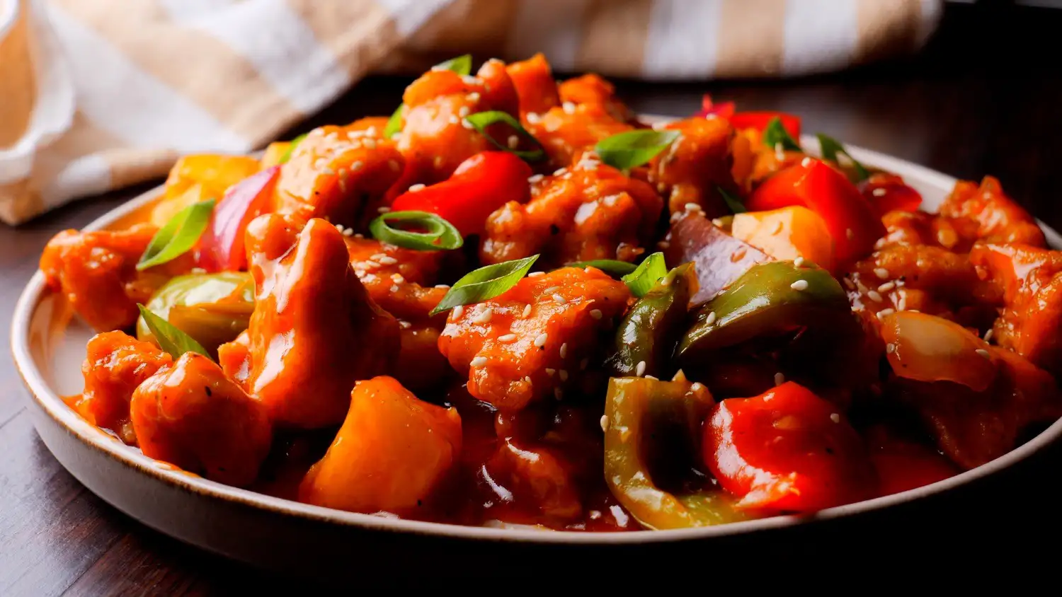 Crispy fried chicken tossed in a tangy-sweet sauce made with fresh veggies, pineapple, and a splash of spice. Every bite hits you with that mouthwatering combo of sweetness and zest, making it an instant favorite. A colorful, flavorful dish that’s both bold and comforting – just the way desis love it! 😋